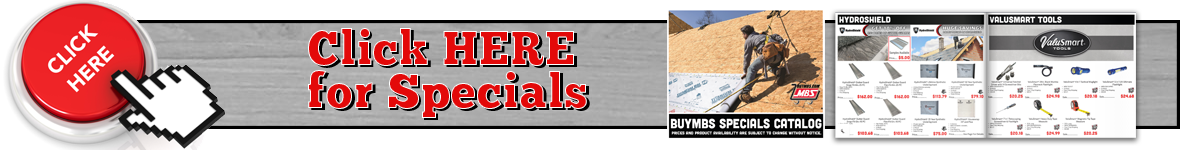 Find Shopping Exclusives from BuyMBS.com on popular items, right from the Modern Builders Supply website. BuyMBS.com is the online division of MBS that allows you to shop for tools, equipment and supplies at your convenience, 24/7. We offer the name brands you know and trust, like Mid America, Tapco, Van Mark, TranzSporter, NTM, MFM, KWM Gutter Machines and more. Click the links to go to BuyMBS.com.